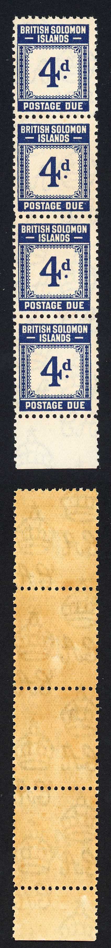 Solomon Is SGD4 4d Blue Post Due 3 x U/M (toned) Cat 44 pounds