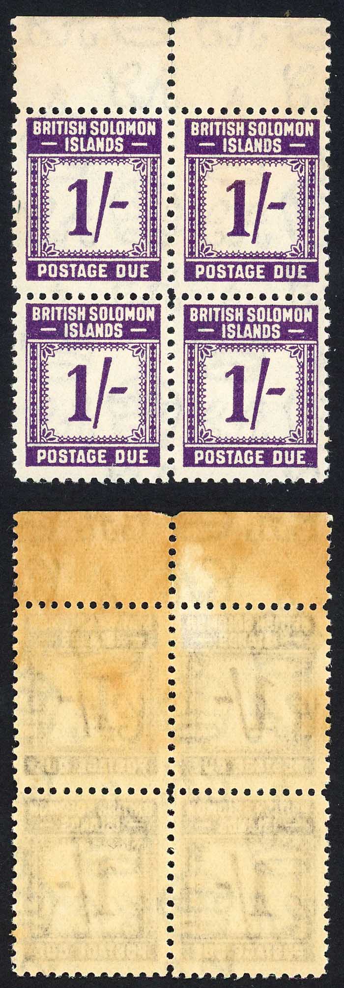 Solomon Is SGD7 1/- Violet Post Due 2 x U/M (toned) Cat 56 pounds