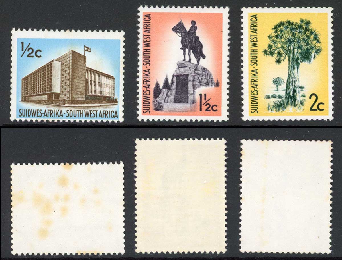 South West Africa SG224/6 Set of 3 U/M (1/2d toned) Cat 35 Pounds