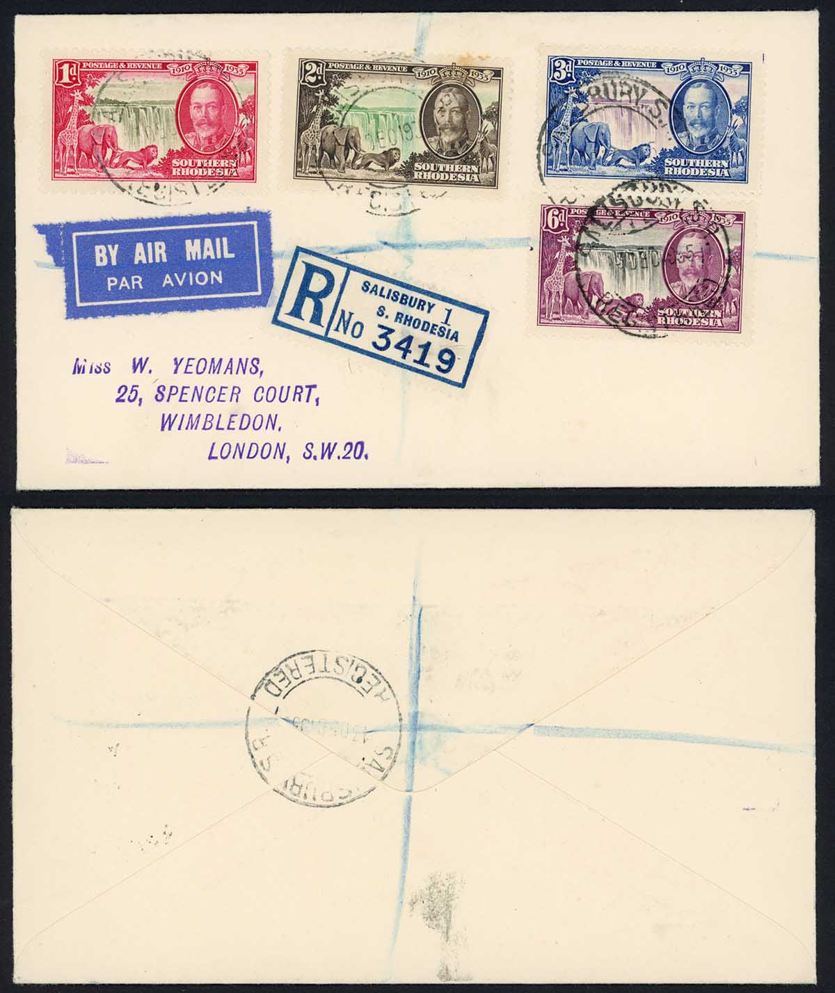 Southern Rhodesia SG31/4 1935 Silver Jubilee on a Registered (NOT FDC) Cover
