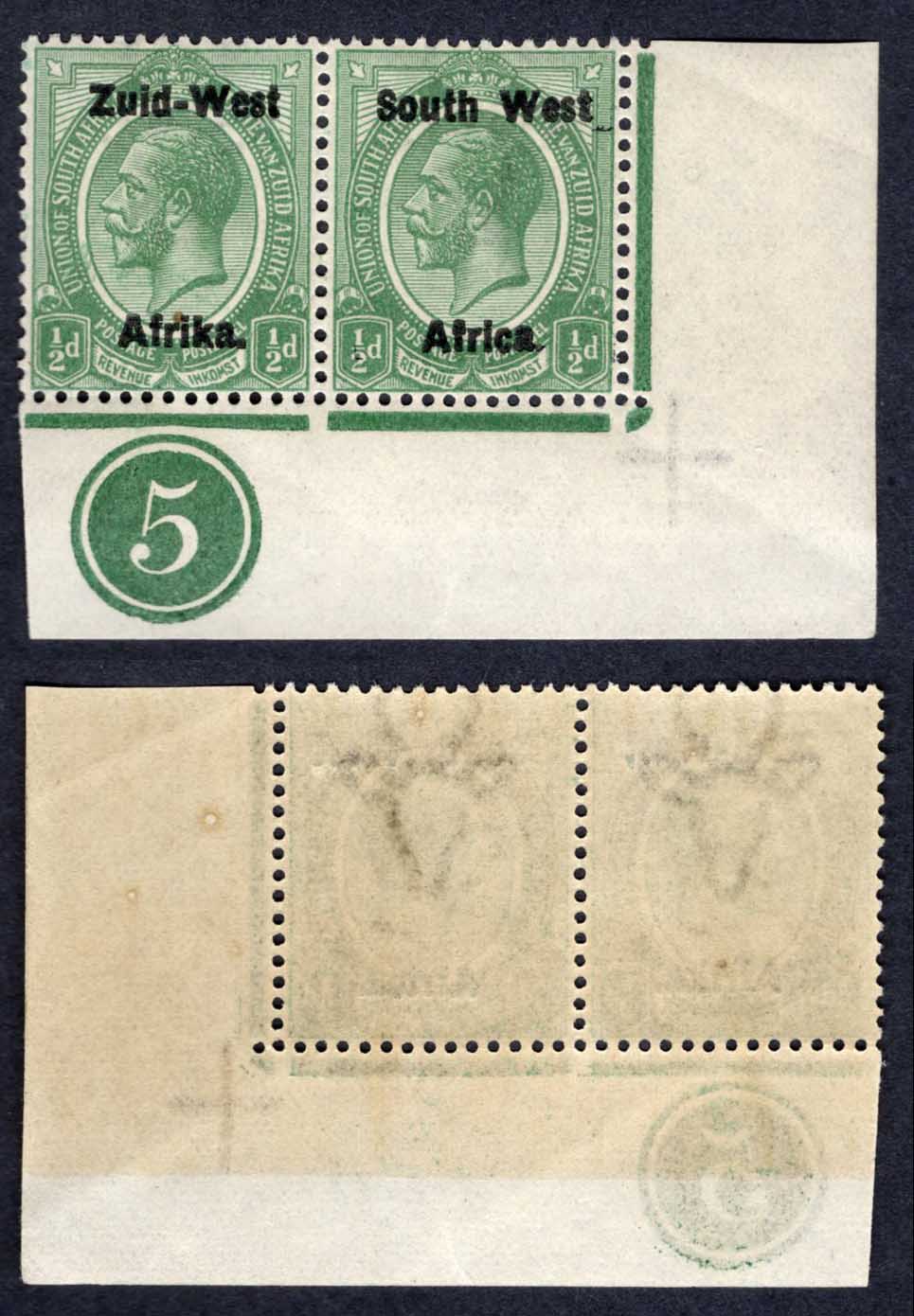 SWA SG1 1/2d Green opt Zuid-West Plate Pair U/M