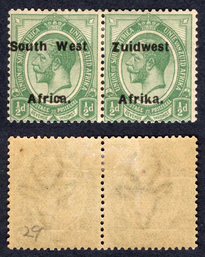 SWA SG29 1/2d opt Zuid west (12mm) M/M Misplaced Overprint