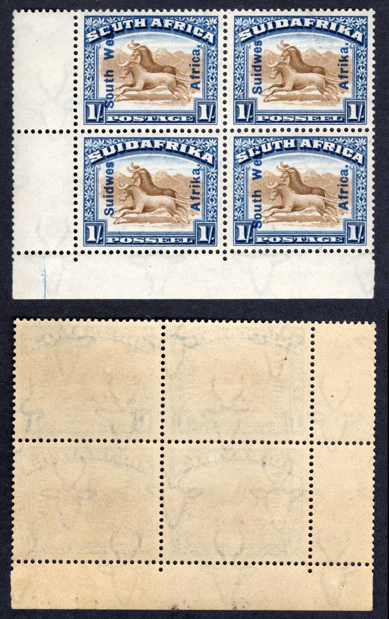 SWA SG51 1/- opt Suidwes Corner Block U/M