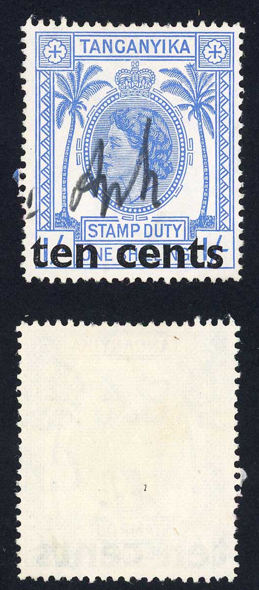 Tanganyika BF16 10c on 1/- Provisional surcharge