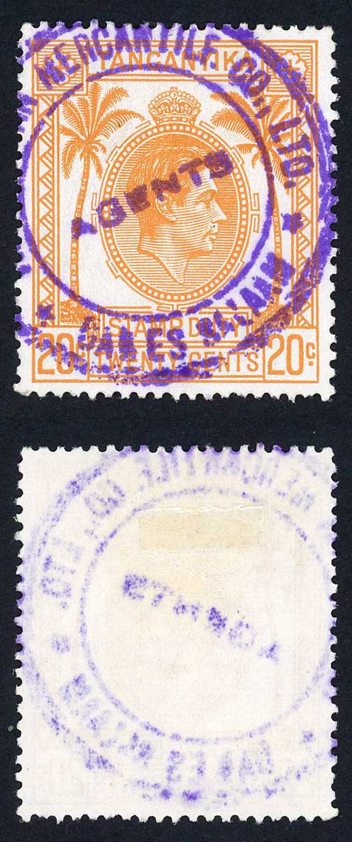 Tanganyika BF2 KGVI 20c Orange Stamp Duty