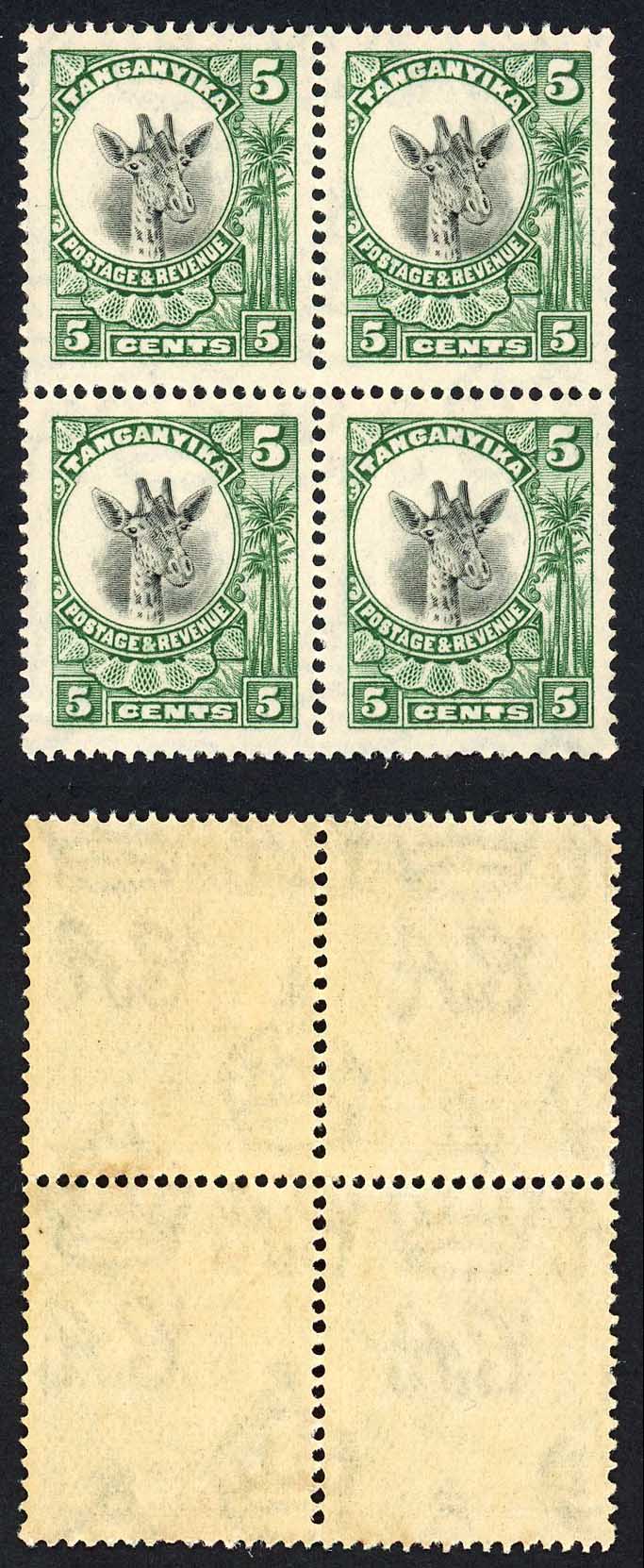 Tanganyika SG89 5c Green U/M Block of FOUR Cat 72++ pounds