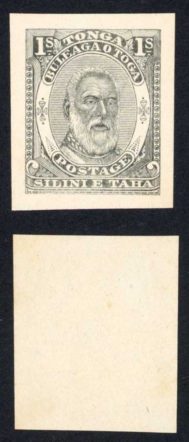 Tonga 1892 (Proof) 1/- King George Tubou I imperf single in black