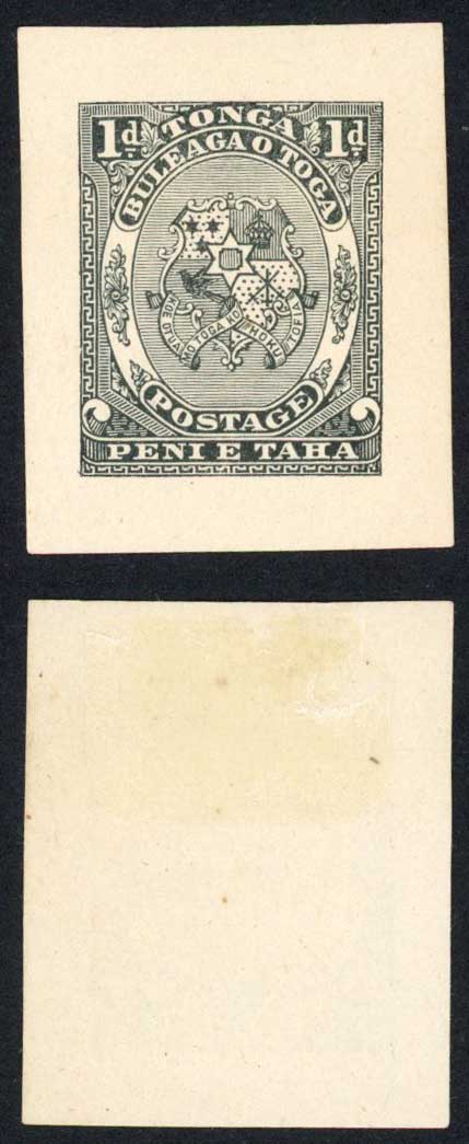 TONGA 1892 (PROOF) 1d ARMS of TONGA UNADOPTED DESIGN in Black