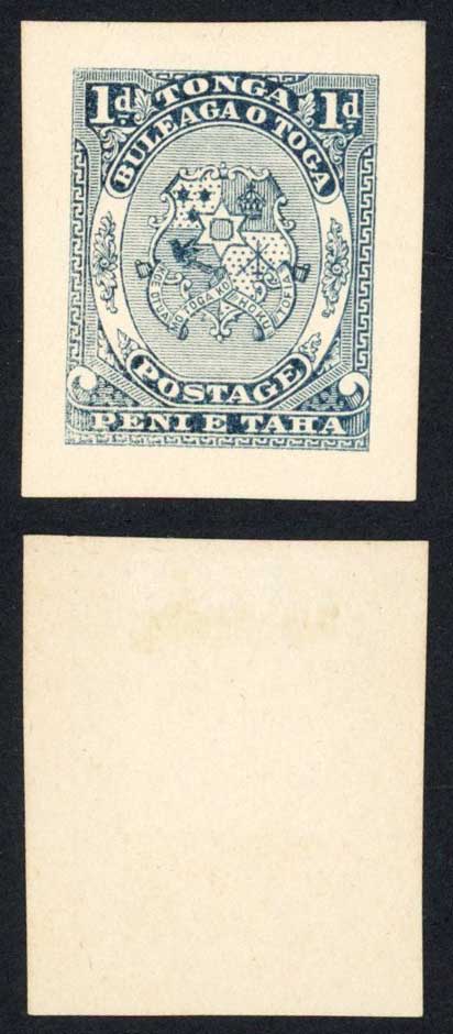 TONGA 1892 (PROOF) 1d ARMS of TONGA UNADOPTED DESIGN in Blue