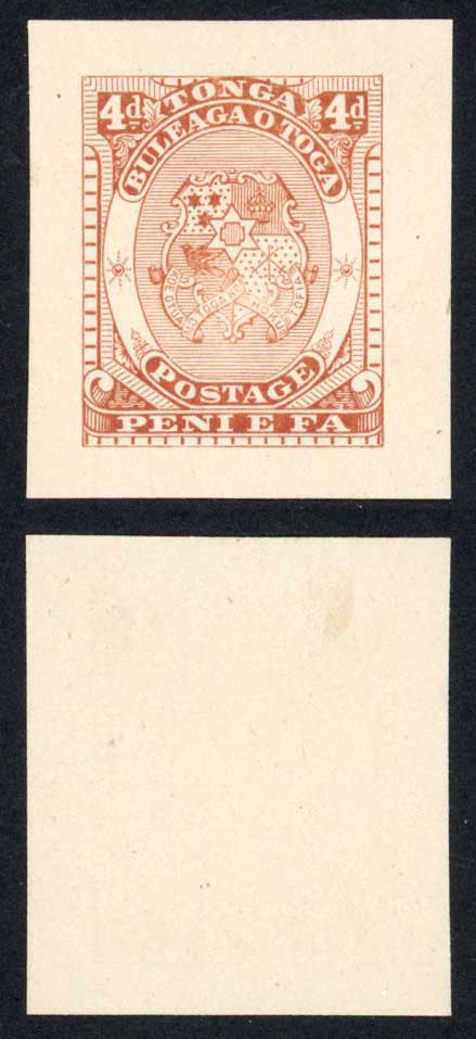 Tonga 1892 (Proof) 4d Arms of Tonga imperf single in Red