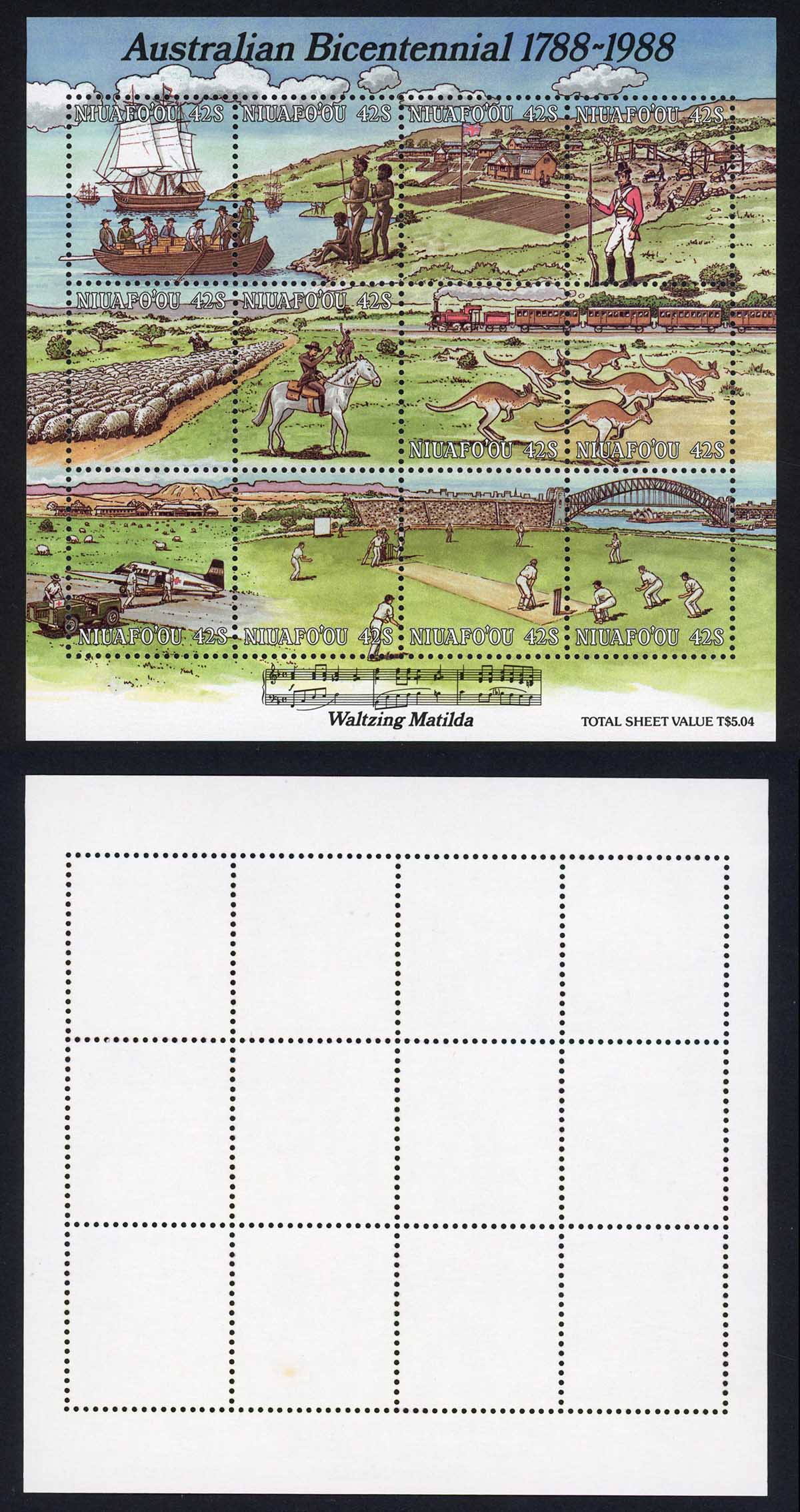 Tonga Niuafoou SGMS107 Bicentenary sheet U/M Cat 38