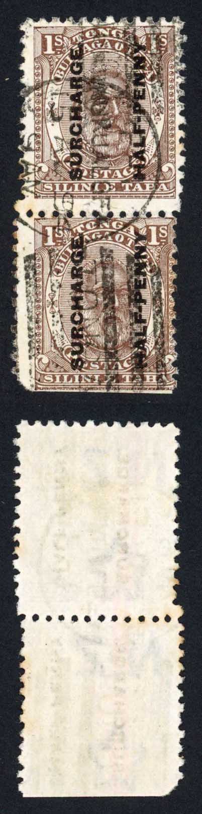 Tonga SG22 1/2d on 1/- Used Pair PERF JUMP