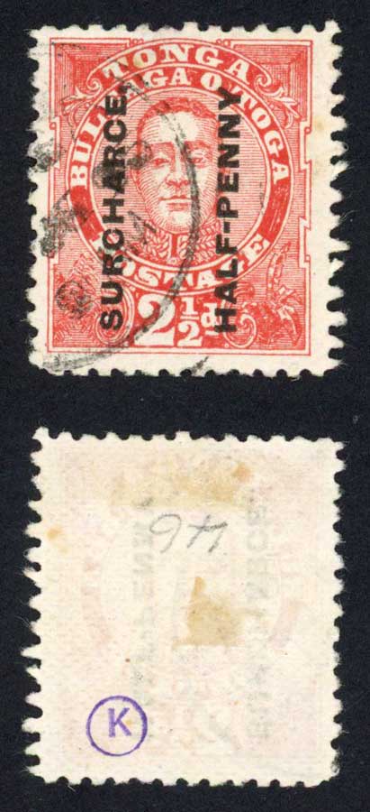 Tonga SG29b 1/2d on 2 1/2d Vermilion Error SURCHARCE used Cat 75 pounds