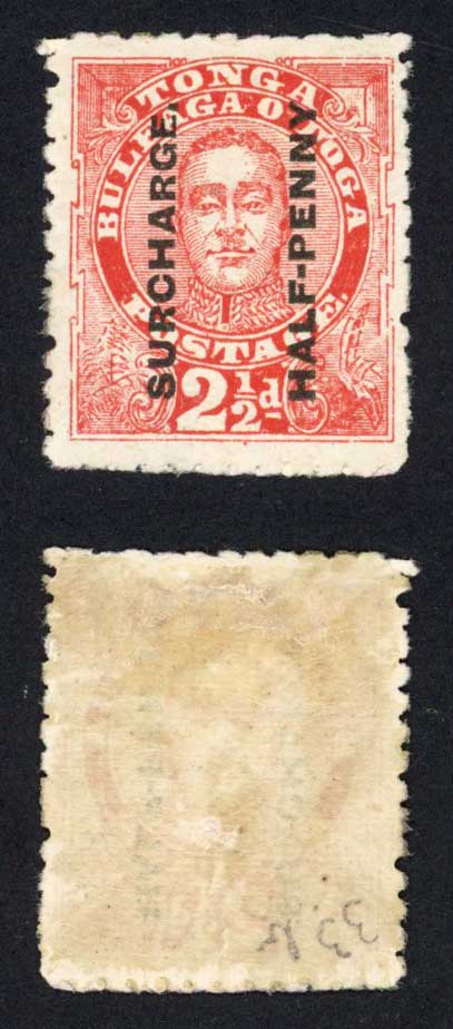 Tonga SG29d 1/2d on 2 1/2d Vermilion Stop after Postage M/M Cat 150 pounds