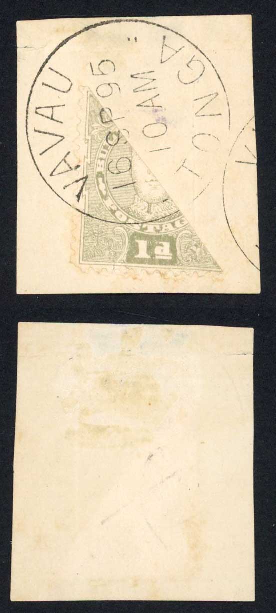 Tonga SG32 1d Olive-green Bisected on Piece 16th Sept 1895 (correct date)