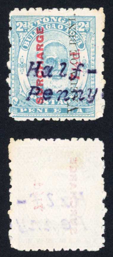 Tonga SG37B 1/2d on 7 1/2d on 2d PERF 12 x 11 Mint (No gum) Cat 85