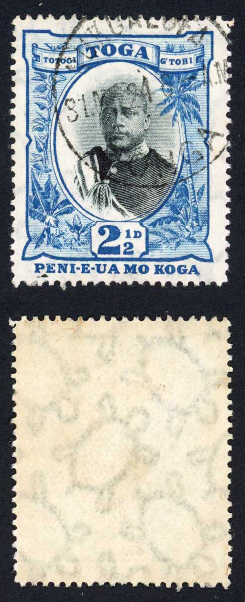 Tonga SG43a 2 1/2d wmk s/ways No FRACTION Bar CDS Cat 65 pounds