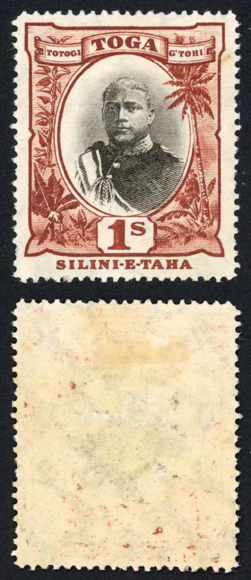 Tonga SG50 1/- Black and red-brown M/M Cat 20 pounds