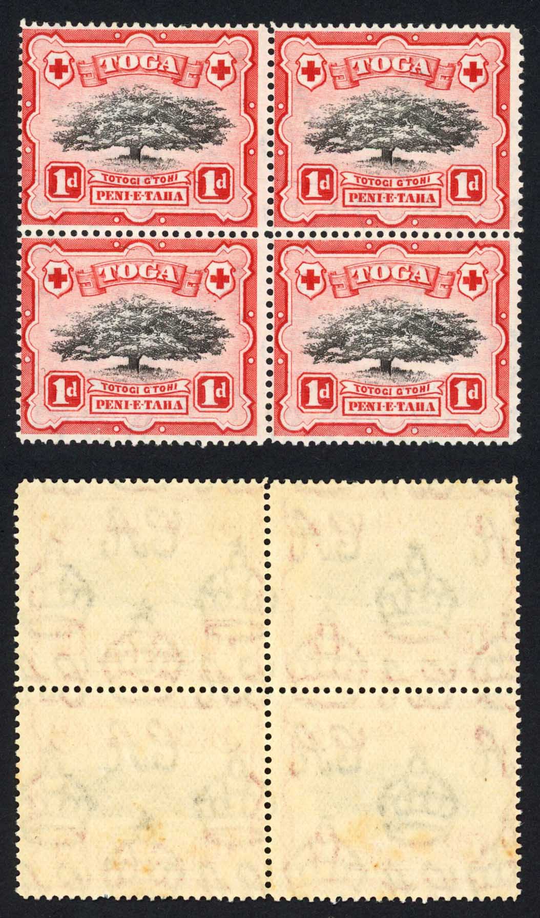 Tonga SG75 1d Wmk Script Bottom right stamps with Red Dots U/M