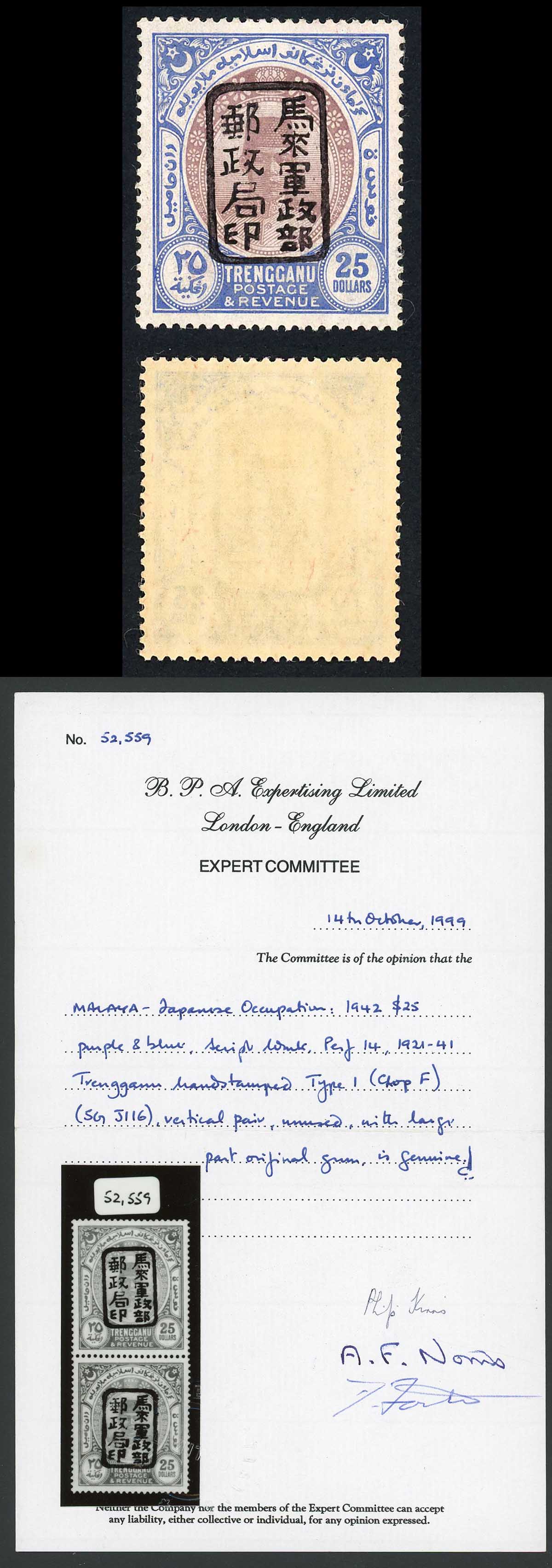 Trengganu Japanese Occupation SGJ116 25 Dollar M/M BPA Cert Cat 2750
