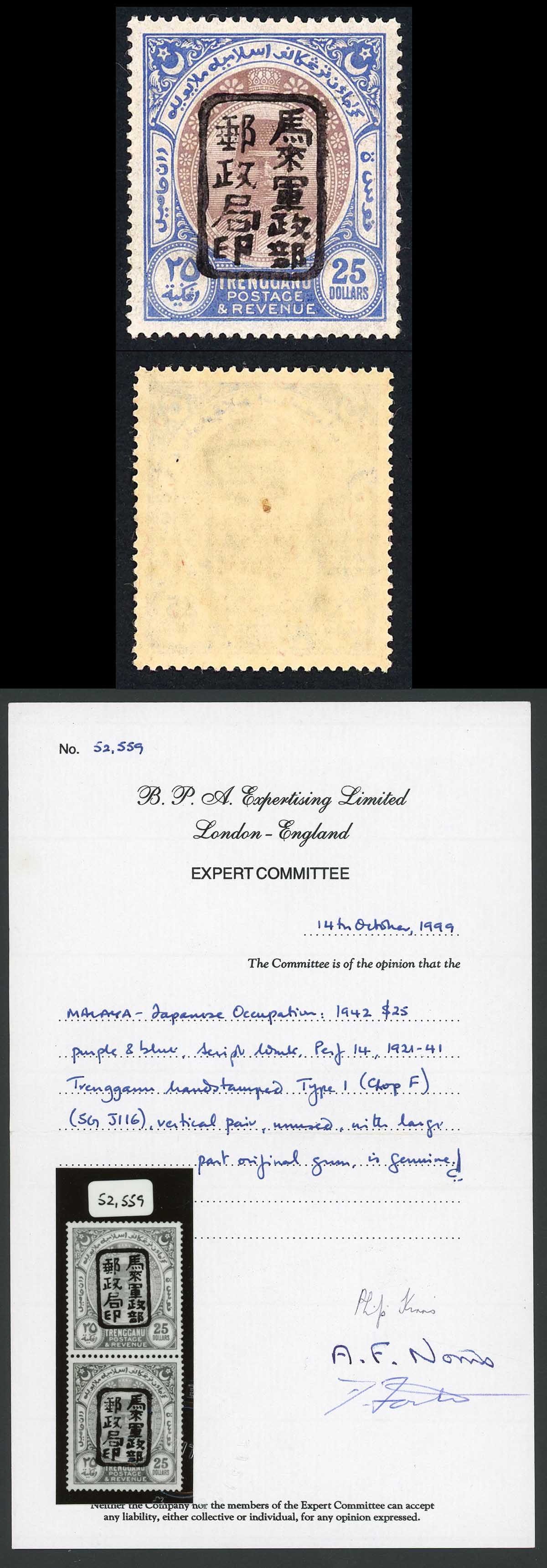 Trengganu Japanese Occupation SGJ116 25 Dollar U/M BPA Cert Cat 2750++