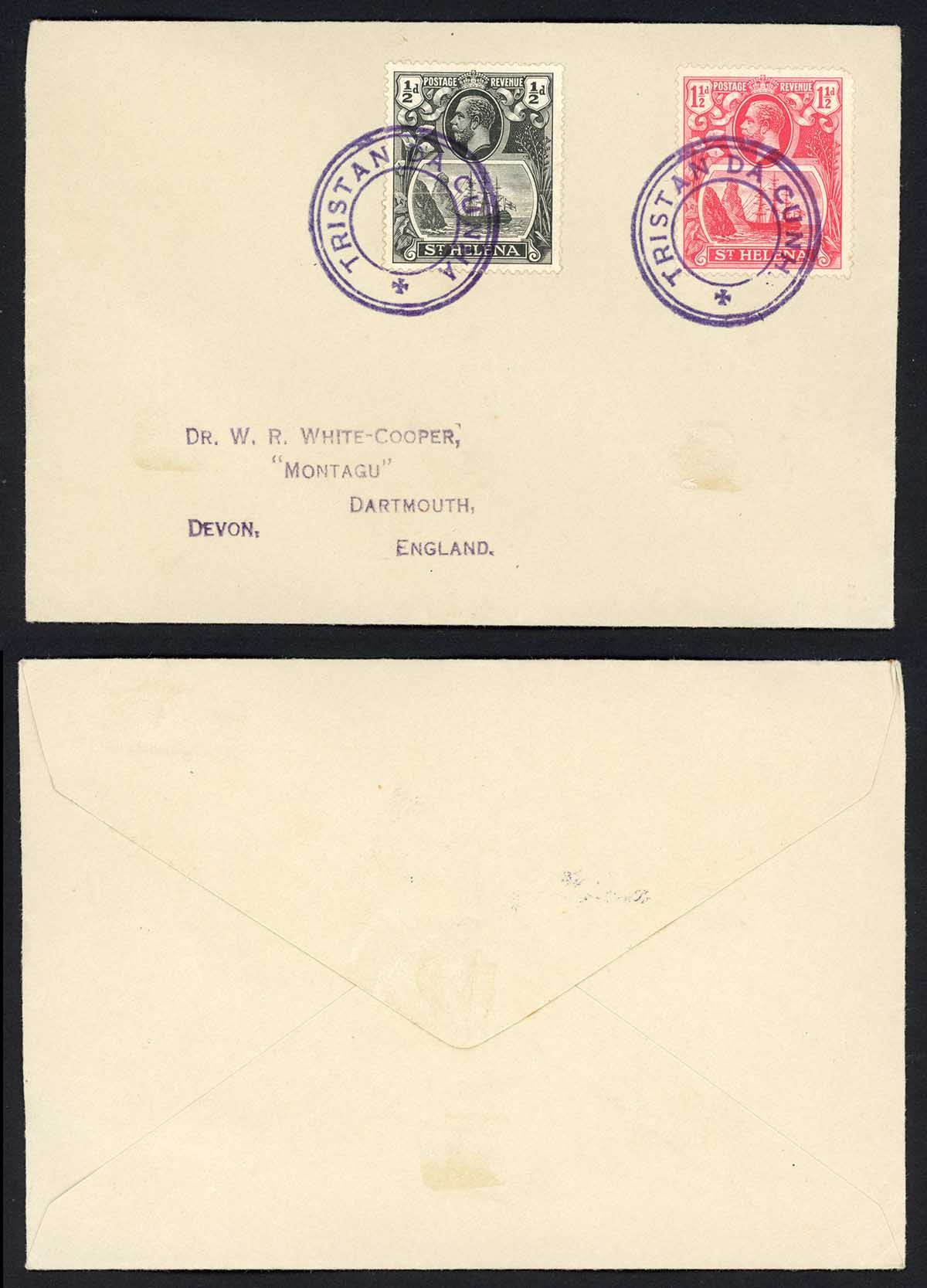Tristan Da Cunha St Helena 1/2d (creased) and 1 1/2d with Type 6 cachet