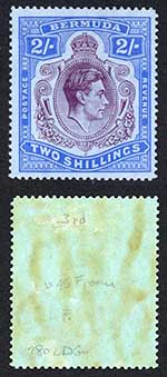Bermuda SG116b 2/- Deep Purple and Ultra/grey-blue Line Perf 14.25 M/M Cat 350
