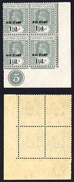 Cayman Is SG58 1/2d on 2d Grey U/M Plate Block U/M Cat 24++++ pounds