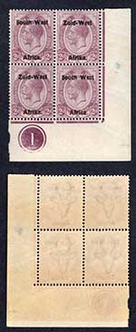 South West Africa SG68 1/2d Rotogravure Block (odd tone spot) Cat 50 Pounds