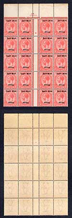 SWA SG2 1d opt Zuid-west Gutter Block of 20 U/M Part r in Africa