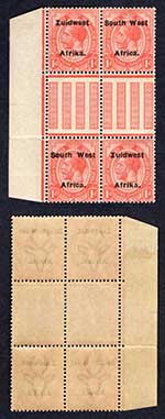 SWA SG35 1/- opt Zuid west (12mm) 5 stamps U/M Marginal Gutter Block of Eight