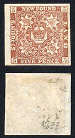 Newfoundland SG19 5d Red-brown No Gum Crease Cat 90 pounds