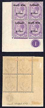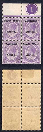 SWA SG2 1d opt Zuid-west U/M Block of 12 Malformed A in Africa