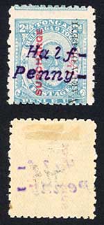 Tonga SG37B 1/2d on 7 1/2d on 2d PERF 12 x 11 M/M Cat 85