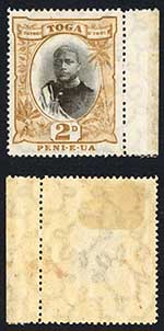 Tonga SG76a 2d Die 3 Corner example U/M (mounted in the margin) Cat 13 pounds