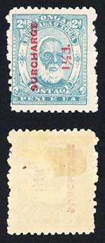 Tonga SG19 1/2d on 1d in Black Mint (no gum) Cat 50 pounds
