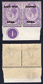 South West Africa SG50 3d Left opt 16.5mm Right 16mm M/M Tone spot
