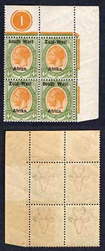 SWA SG17 1d opt Zuid west (11mm) MISPLACED SURCHARGE Plate Block