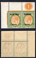 SWA SG22 1/- opt Zuid west (11mm) M/M Plate Pair