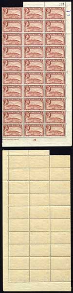 Gibraltar SG122b 1d Red-brown Perf 13 Wmk Sideways Block of 30 U/M Cat 75 pounds
