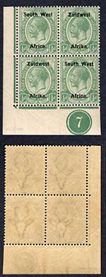 SWA SG16 1/2d opt Zuid west (11 mm) Plate Block of 4 U/M