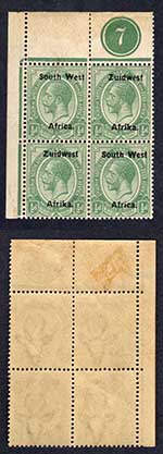 SWA SG36 1/3 opt Zuid west (12mm) Plate Block Misplaced Overprint