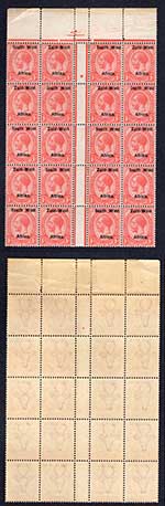 SWA SG35 1/- opt Zuid west (12mm) 5 stamps U/M Marginal Gutter Block of Eight