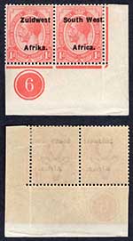 SWA SG22 1/- opt Zuid west (11mm) M/M Plate Pair