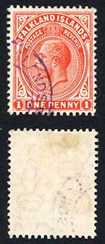 Falkland Is KGV 1d VIOLET Pmk only in used 1914