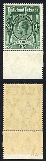 Falkland Is SG80 3/- Slate-green Wmk Script U/M Cat 110 pounds