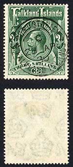 Falkland Is SG80 3/- Slate-green Wmk Script 1930 CDS Cat 170 pounds