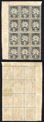 Brunei SG3 2c Black CDS (toned) Block of 12 Cat 264++ pounds