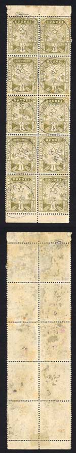 Brunei SG10 One Dollar Yellow-olive CDS (toned) Block of 10 Cat 1200++ pounds