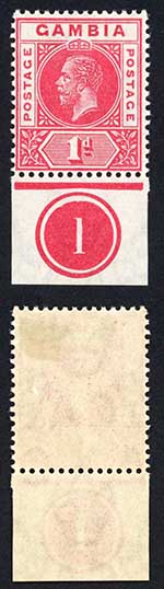 Gambia SG87a 1d Rose-red Wmk Mult CA Plate Number Example M/M